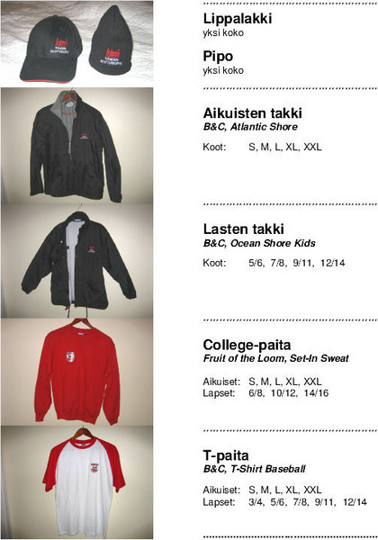 Nyt myynnissä oma vaatesetti kerholaisille. Kerholaisille myynnissä oma vaatesetti: PIPO, LIPPIS, T-PAITA, COLLEGE ja TAKKI. Tuotteissa kerhon logo ja kaikki tuotteet ovat hyvälaatuista materiaalia. Voit ostaa yksittäin tai settinä. Tuotteiden hinnat: