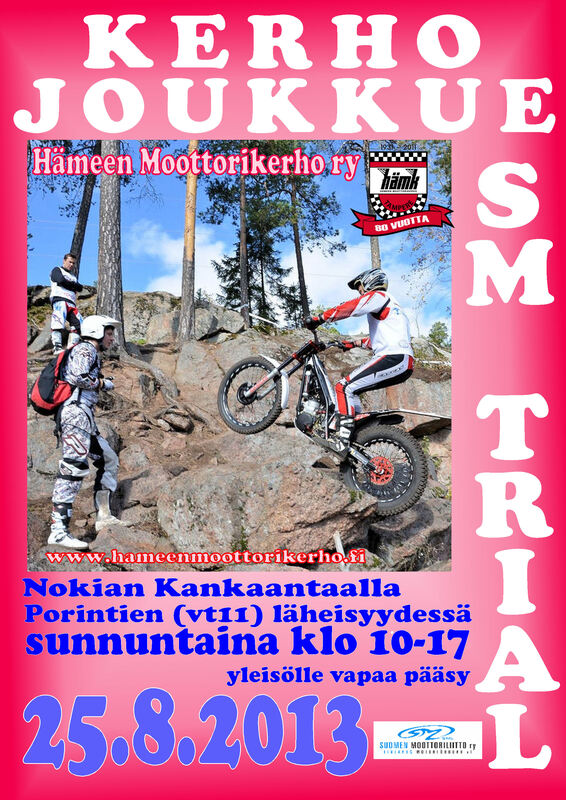 Trialin SM osakilpailu ja kerhojoukkue SM ajettiin nokialla 24. - 25.8. viikonloppuna Varikko sijaitsi Metallityö Välimäki Oy:n pihassa, osoitteessa Pikkukorventie 14, 37150 NOKIA