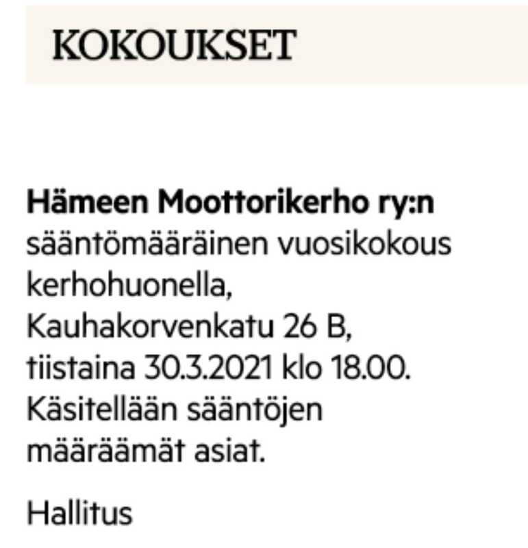 Sääntömääräinen vuosikokous ti 30.3.2021