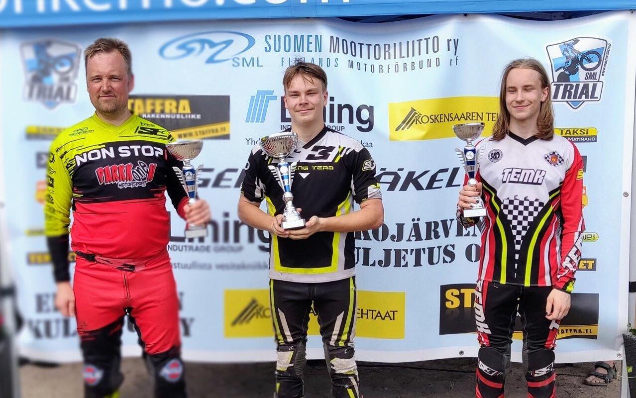 X-Trialin Suomen Mestaruudesta ajettiin SM viikoilla Salossa perjantaina 1.7.2022. Timo otti omansa ja X-Trialin mestaruus irtosi 4 virhepisteen erolla toiseen sijaan. Samuel Jääskeläinen oli sijalla 6 ja Jussi Haapasen sijoitus oli 7. Kilpailussa ajettiin myös X-Trial luokat TR3 ja TR5. TR3 luokassa tuli kaksoisvoitto, kun Vikku Selin päihitti valmentajansa Mikko Seistolan yhdellä pisteellä. Manu Ruotsalainen sijoittui 5:ksi ja Eelis Jääskeläinen oli 8. TR5 luokassa Okko Päivinen ajoi hopealle ja Vilho Eskola jäi yhden virhepisteen päähän palkintokorokesijoituksesta ollen täten neljäs. Ossi Kivirannan sijoitus oli 7. |